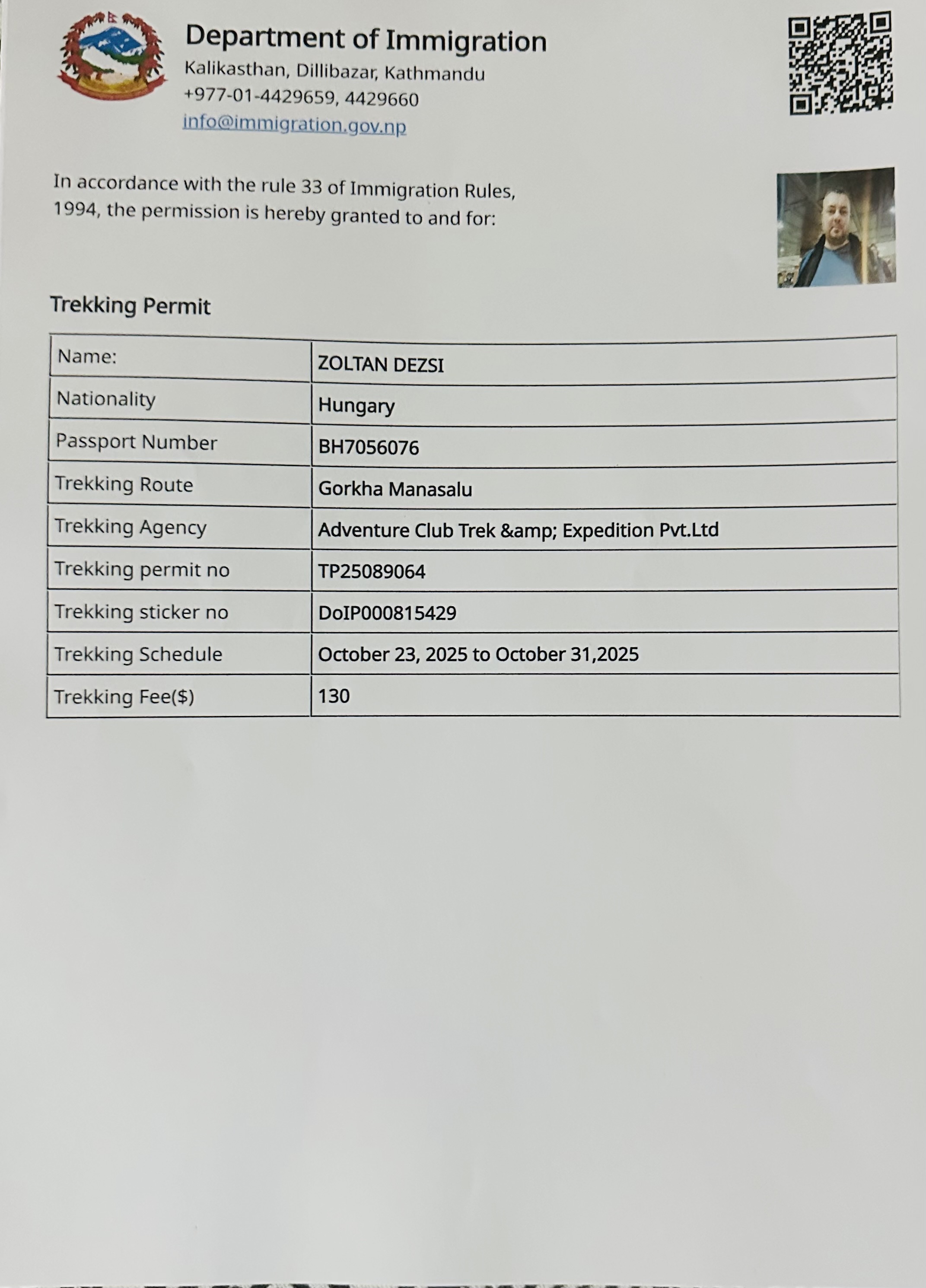 Special Restricted Area Permit for Manaslu (Manaslu RAP)
